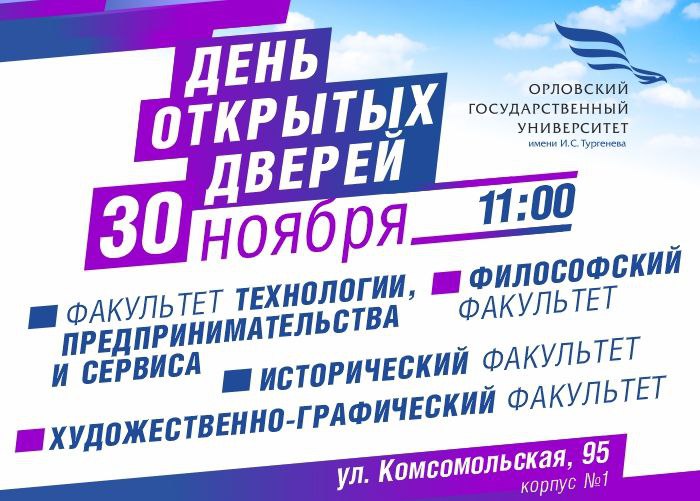 Вы получите информацию о поступлении, познакомитесь с преподавателями, сможете задать свои вопросы и открыть для себя мир ОГУ имени И.С. Тургенева!